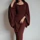 CELÉSTE Plain Chiffon Midi Slip Dress with Cardigan